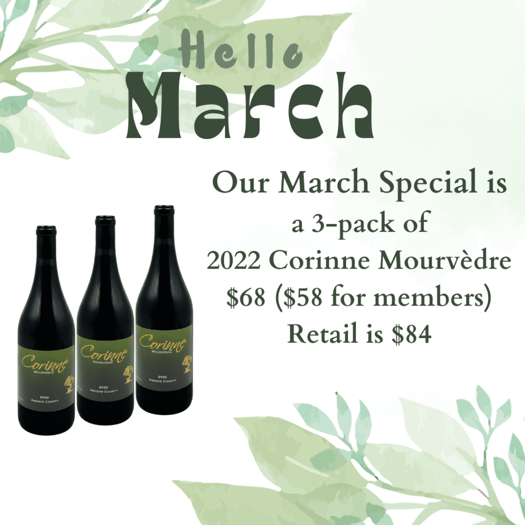 This March, we are celebrating with a 3-pack of our newly released 2022 Corinne Mourvèdre for just $68 ($58 for wine club members). these would retail for $84.