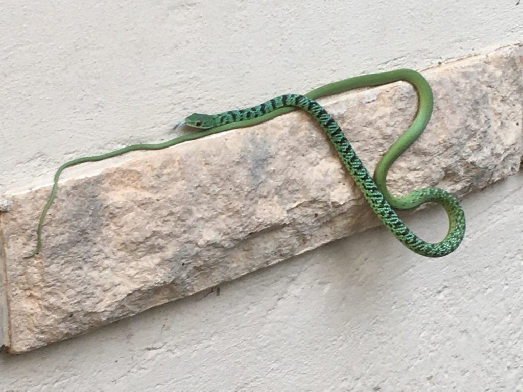 After arriving at Wendy’s place in Ballito (north of Durban) We spent time catching up. Her grandson called out about a snake on her wall. What a pretty snake. A bush snake.