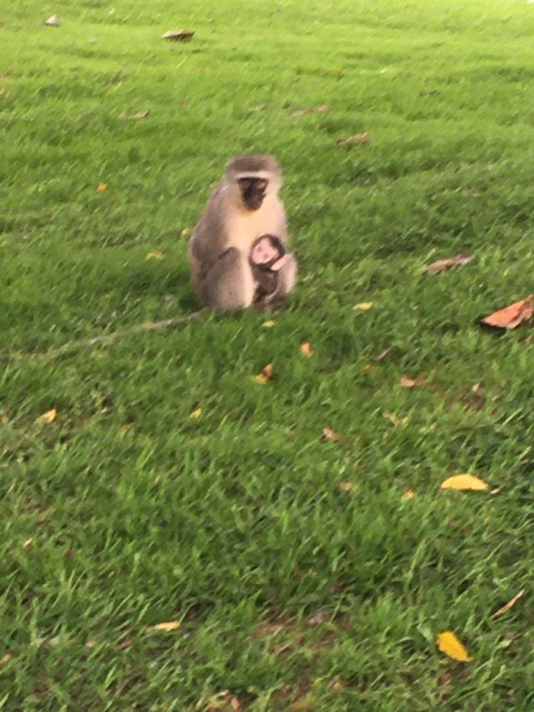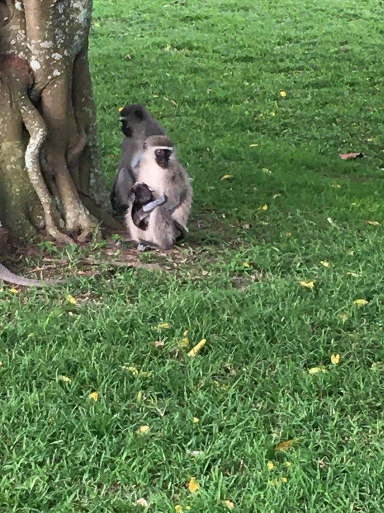 So we went for a walk on the Golf Course and saw many mom’s with babies sometimes twins. These monkeys will get into any open window looking for food and one made it into Wendy’s house, but she was able to shoo it away quickly!